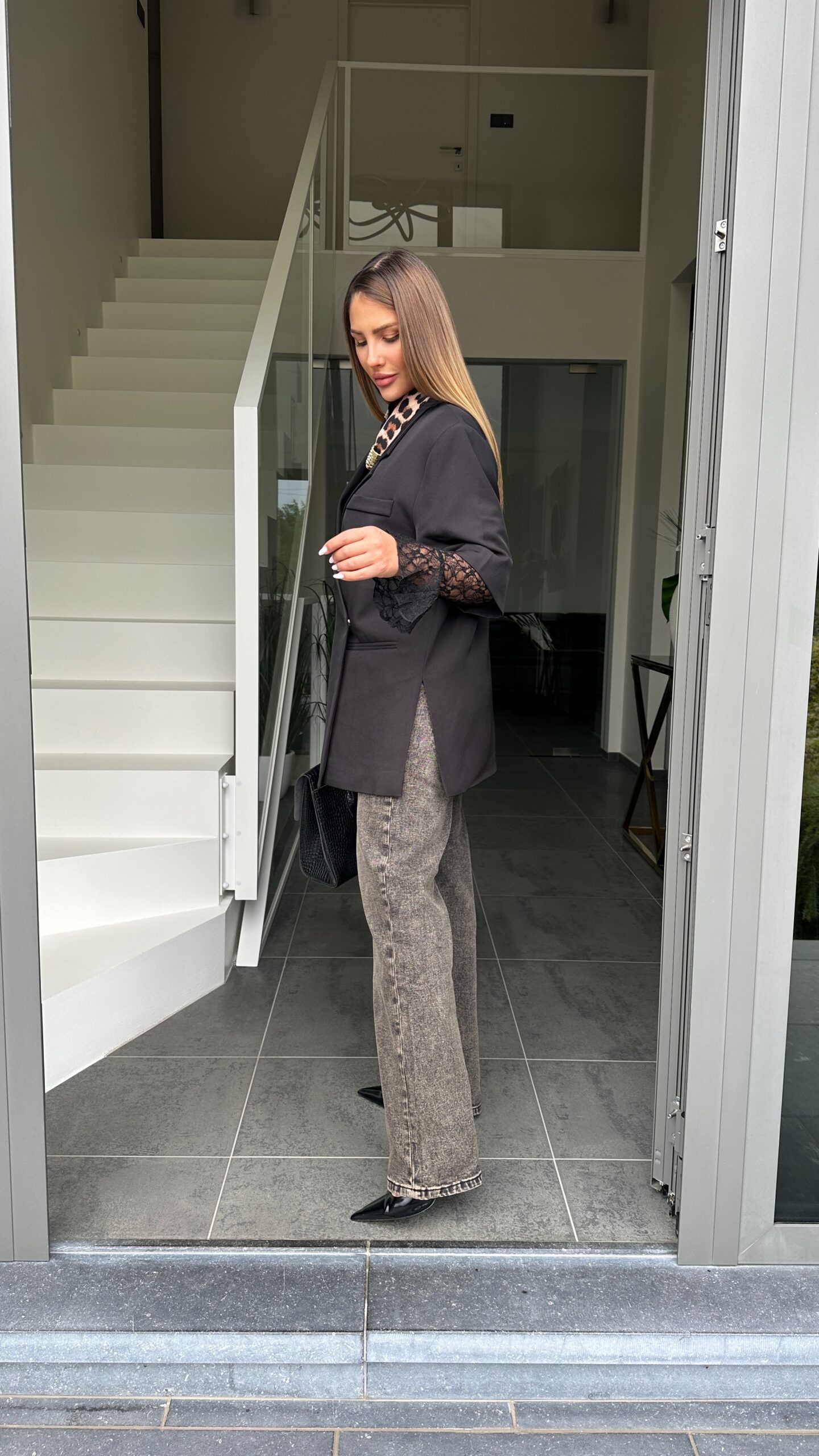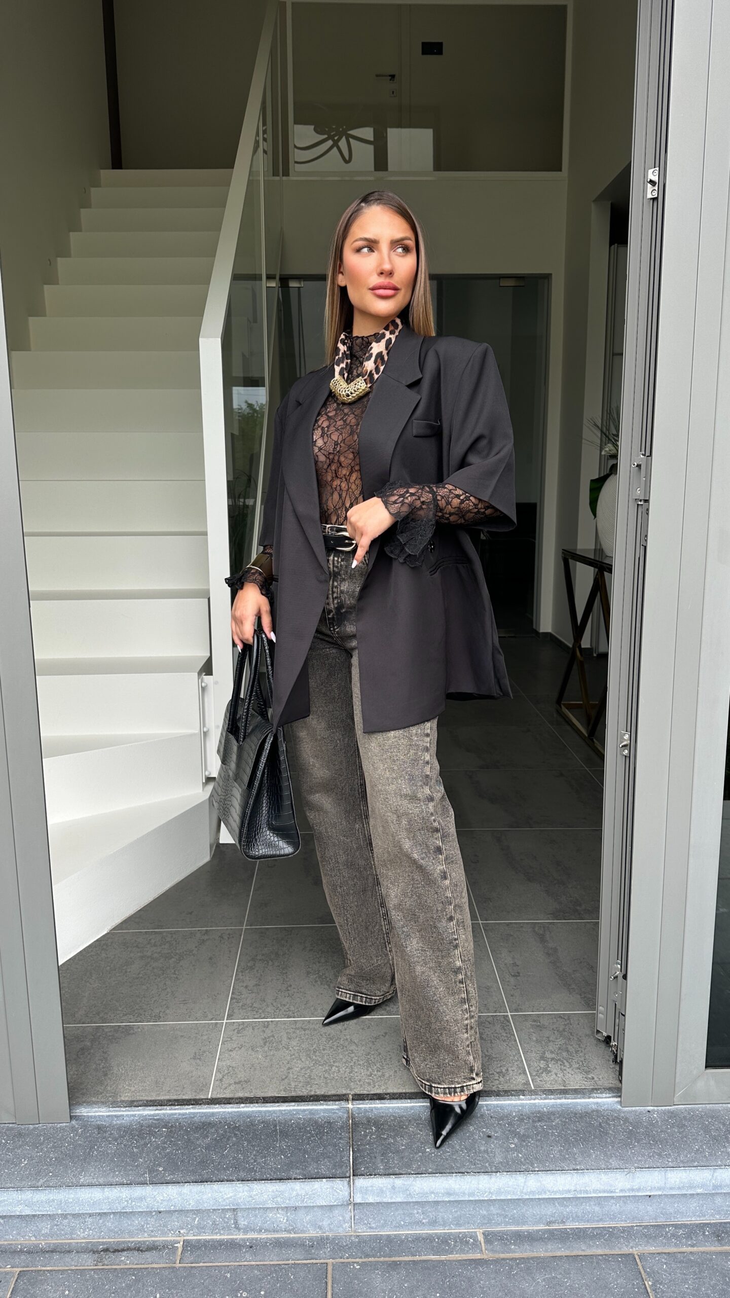 Blazer noir élégant à manches 3/4, très féminin et chic avec bouton sur le côté. Se porte parfaitement avec une blouse en dentelle ou colorée, un jean, une jupe ou une robe pour un look raffiné et sophistiqué.