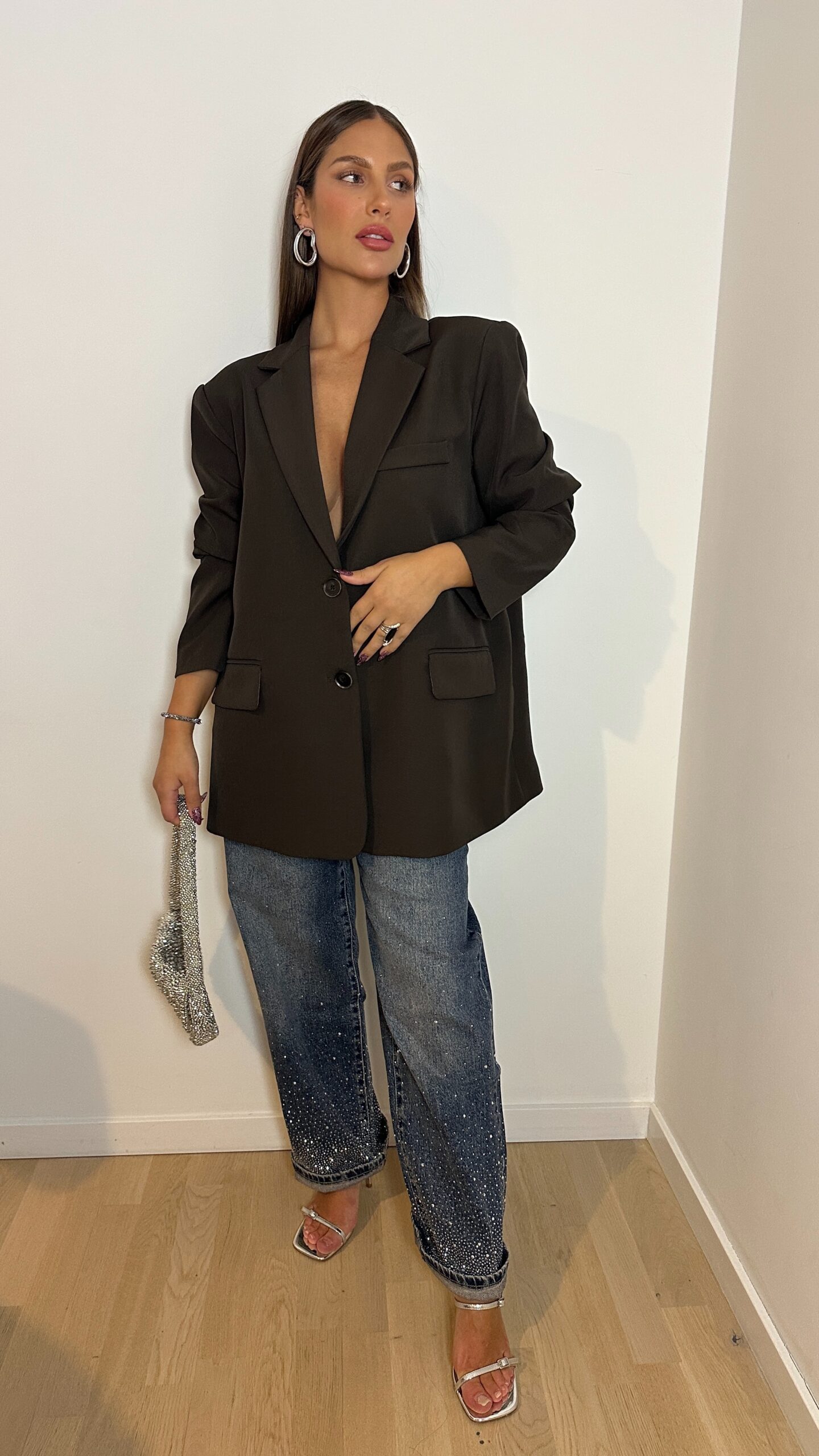 Blazer oversize à épaulettes légères, sublimé par une ouverture élégante dans le dos qui lui donne tout son caractère. Sa couleur marron se marie parfaitement avec le beige, le bleu marine, bordeaux, noir ou gris. Avec ses fausses poches en guise de détail. À porter aussi bien avec une jupe qu’avec un pantalon pour un look chic et tendance.