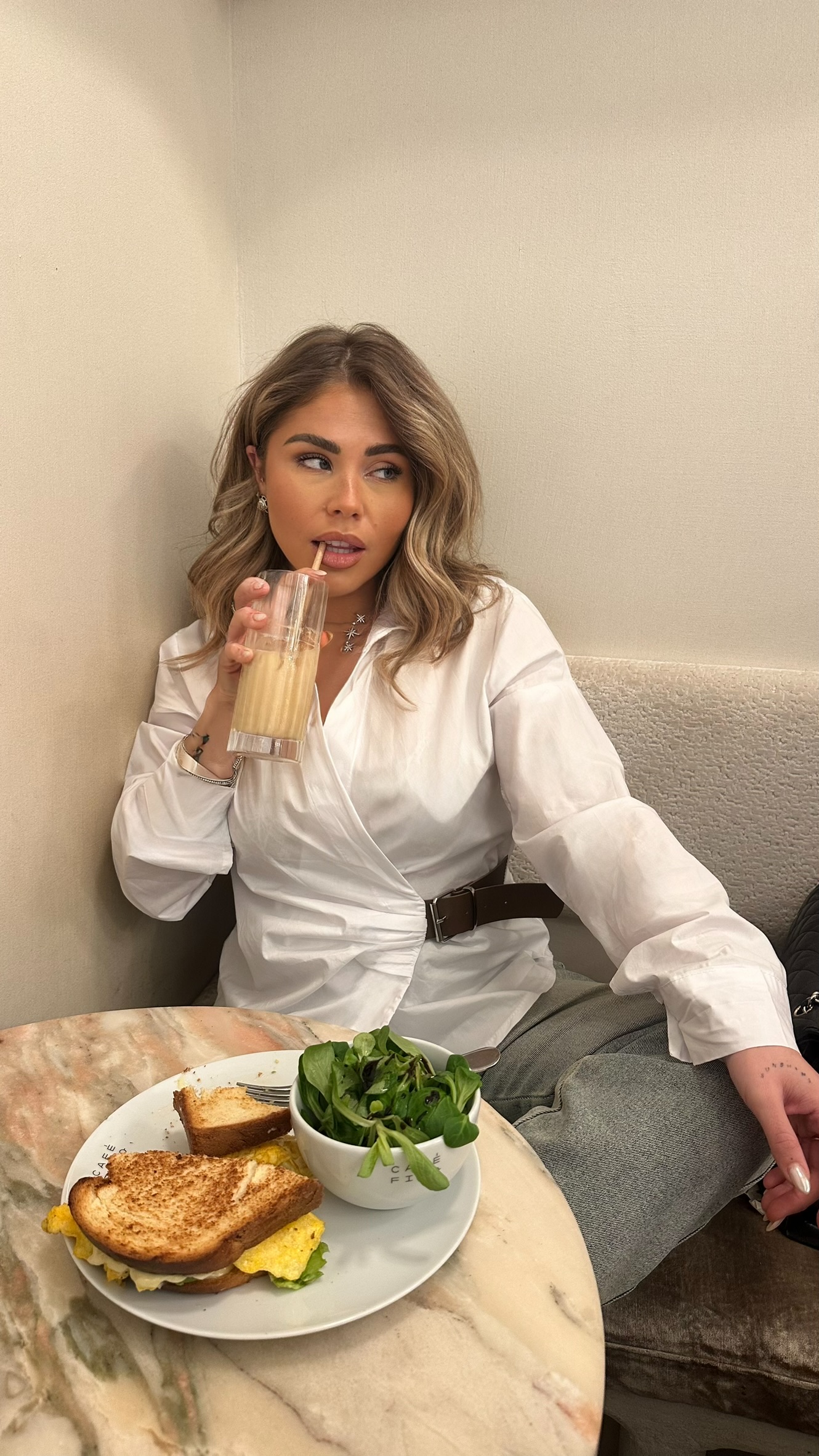 CHEMISE CACHE-CŒUR BLANCHE CEINTURÉE