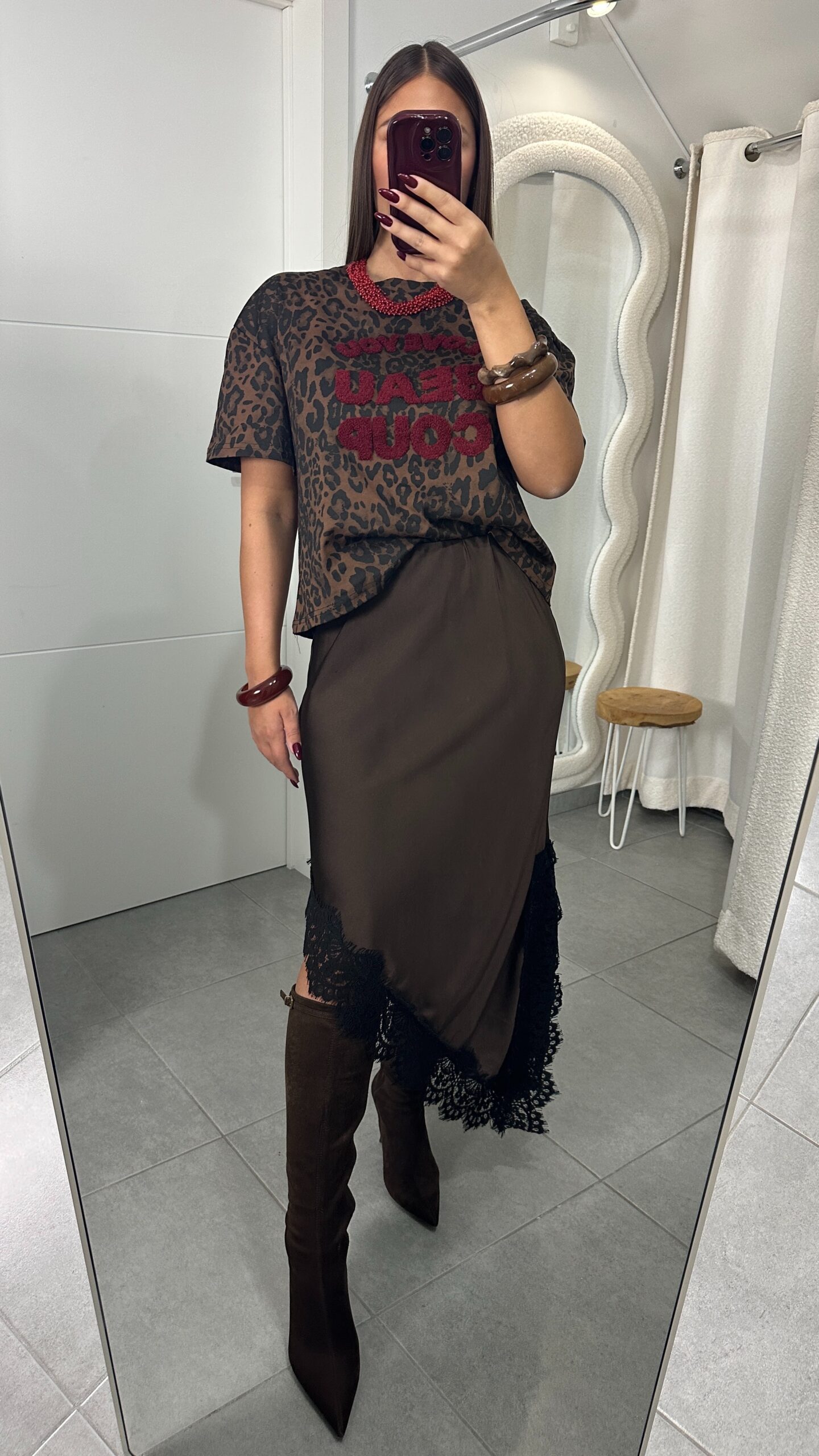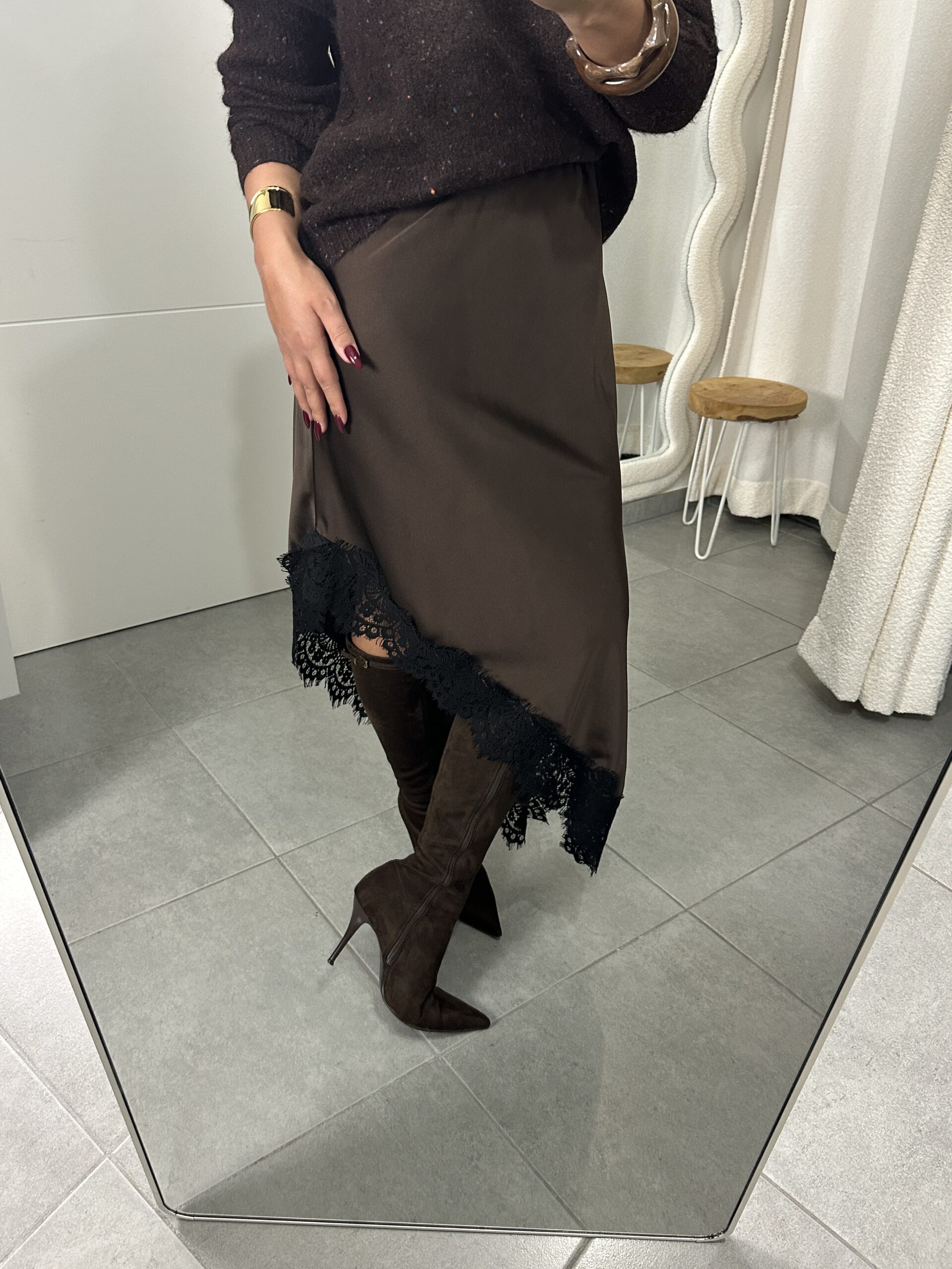 JUPE SATINÉE MARRON – ASYMÉTRIQUE