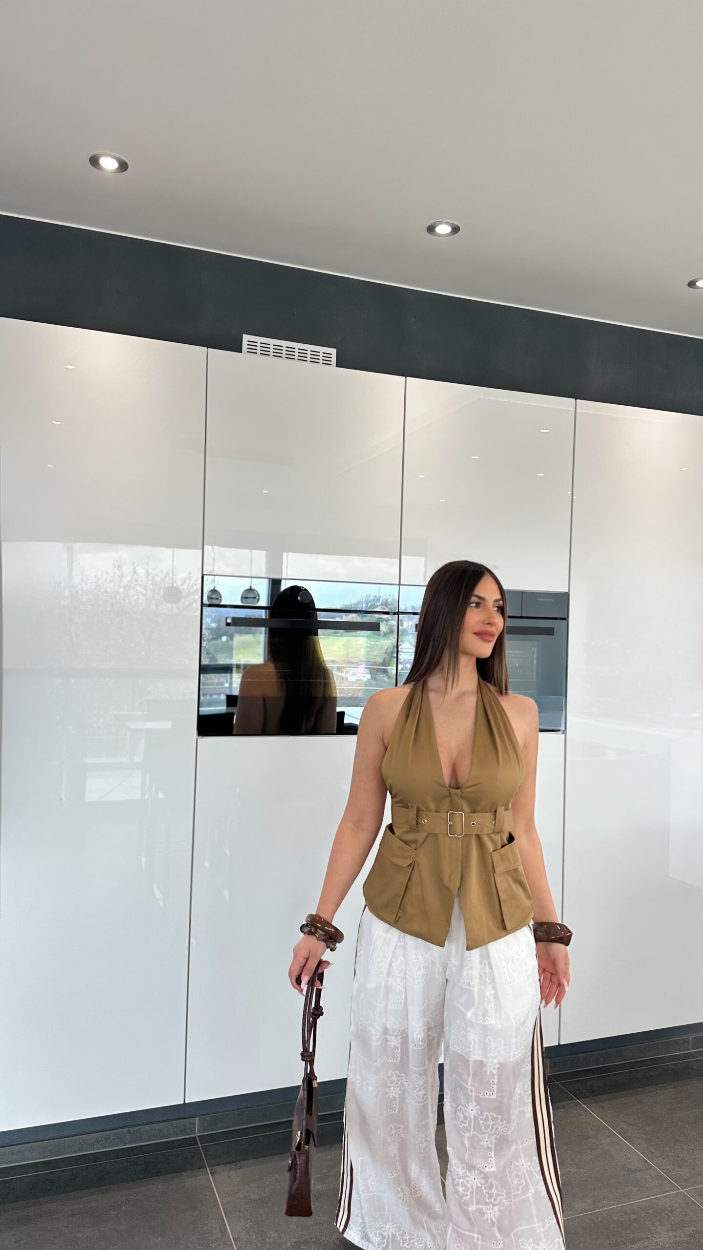 Il a une superbe allure et devient facilement la pièce maîtresse du look. À porter avec un blazer marron ou beige et une blouse ou un débardeur rentré. Parfait en journée avec des baskets, sandales ou talons, mais aussi idéal pour les vacances.