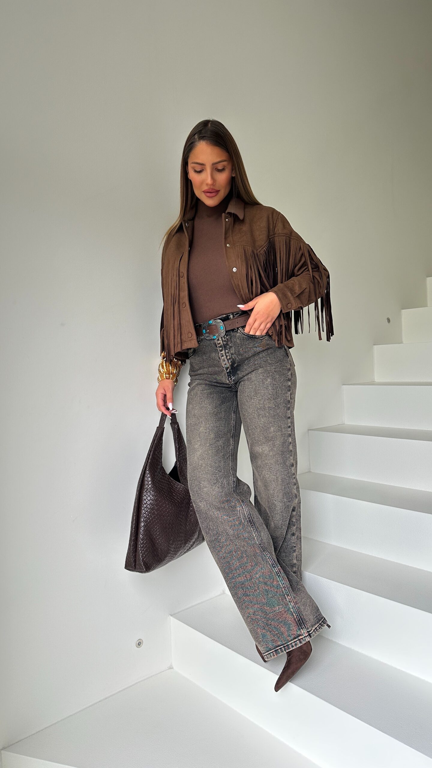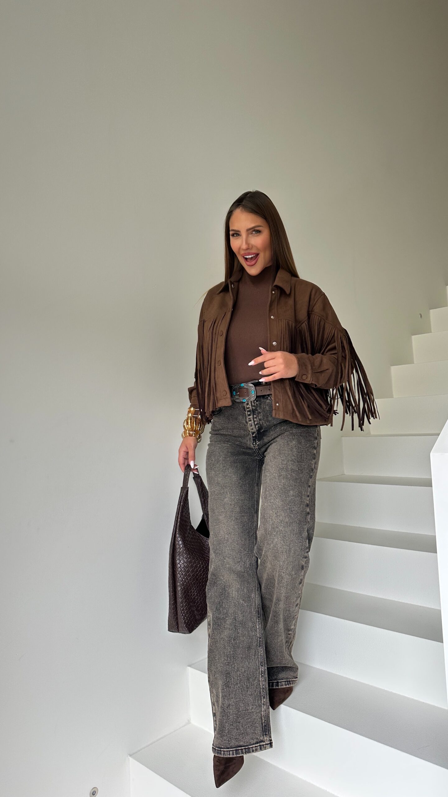 VESTE MARRON – FRANGES STYLE COWBOY